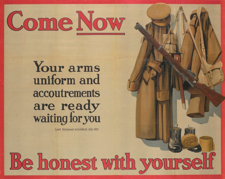 “Drab” as the khaki colored clothes may have been, they were nonetheless deeply desirable. Civilian military participation created a sense of patriotism around the war and the idea of the smartly dressed uniformed man became a symbol of pride.