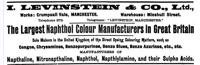 The leading British survivor was Ivan Levinstein, who ran his Manchester firm like it was his personal fiefdom. Despite his rather crass management style, however, Levinstein understood perfectly well what was beating him. From his obituary: His name will always be remembered for his stout advocacy for the reform of the Patent Laws, which gave so unfair an advantage to the foreigner, and he undertook at great personal risk many successful actions against certain of the great German chemical firms in order to compel them to grant licences to manufacturers to work their patents in this country. As he once said, “they had patented the whole field of organic chemistry by their astute method of drafting their patents.” For his lobbying, meanwhile, the German firms punished Levinstein by refusing to buy the dozens of intermediate compounds (downstream of coal tar) that finished dyes required from his company.20